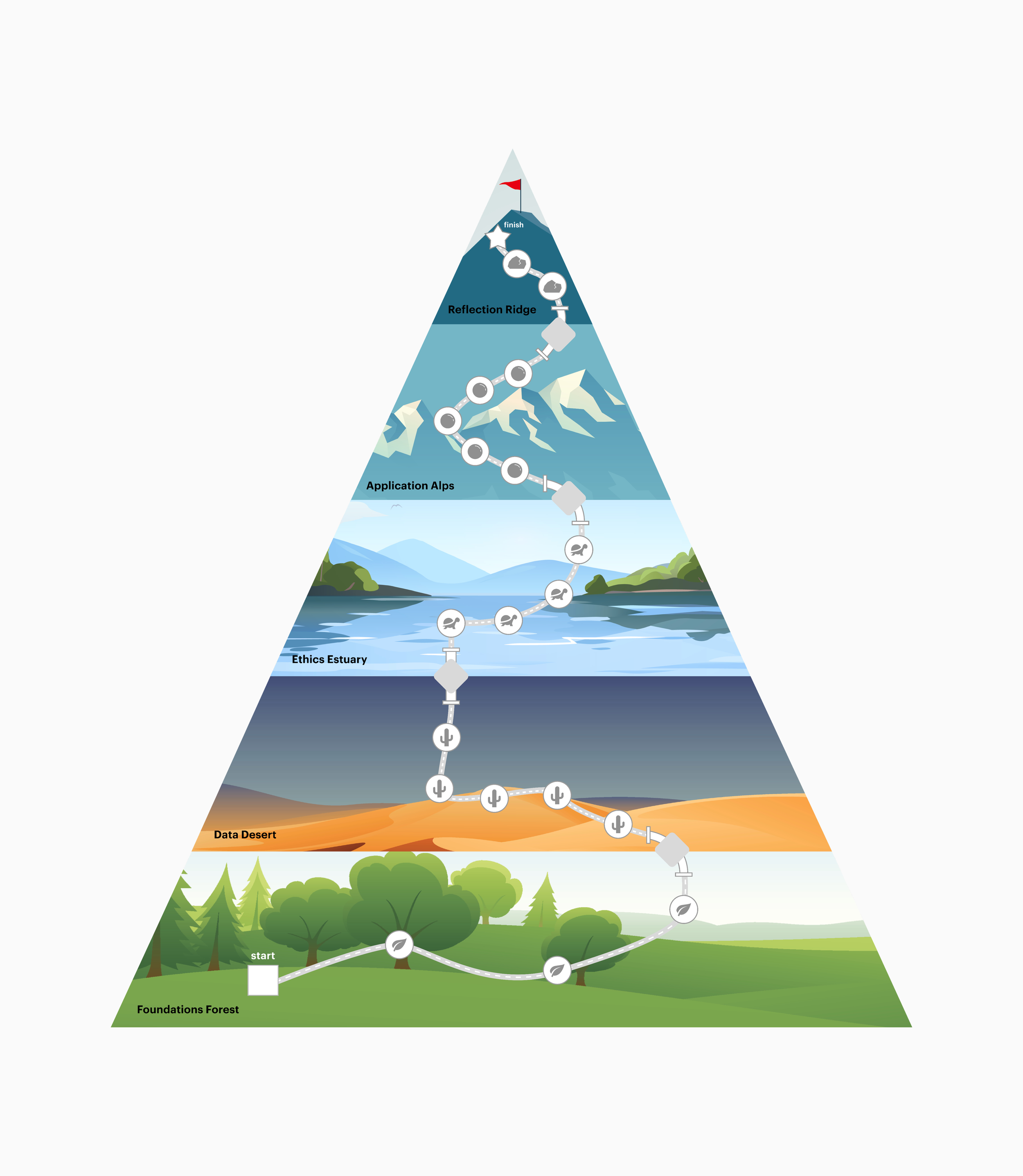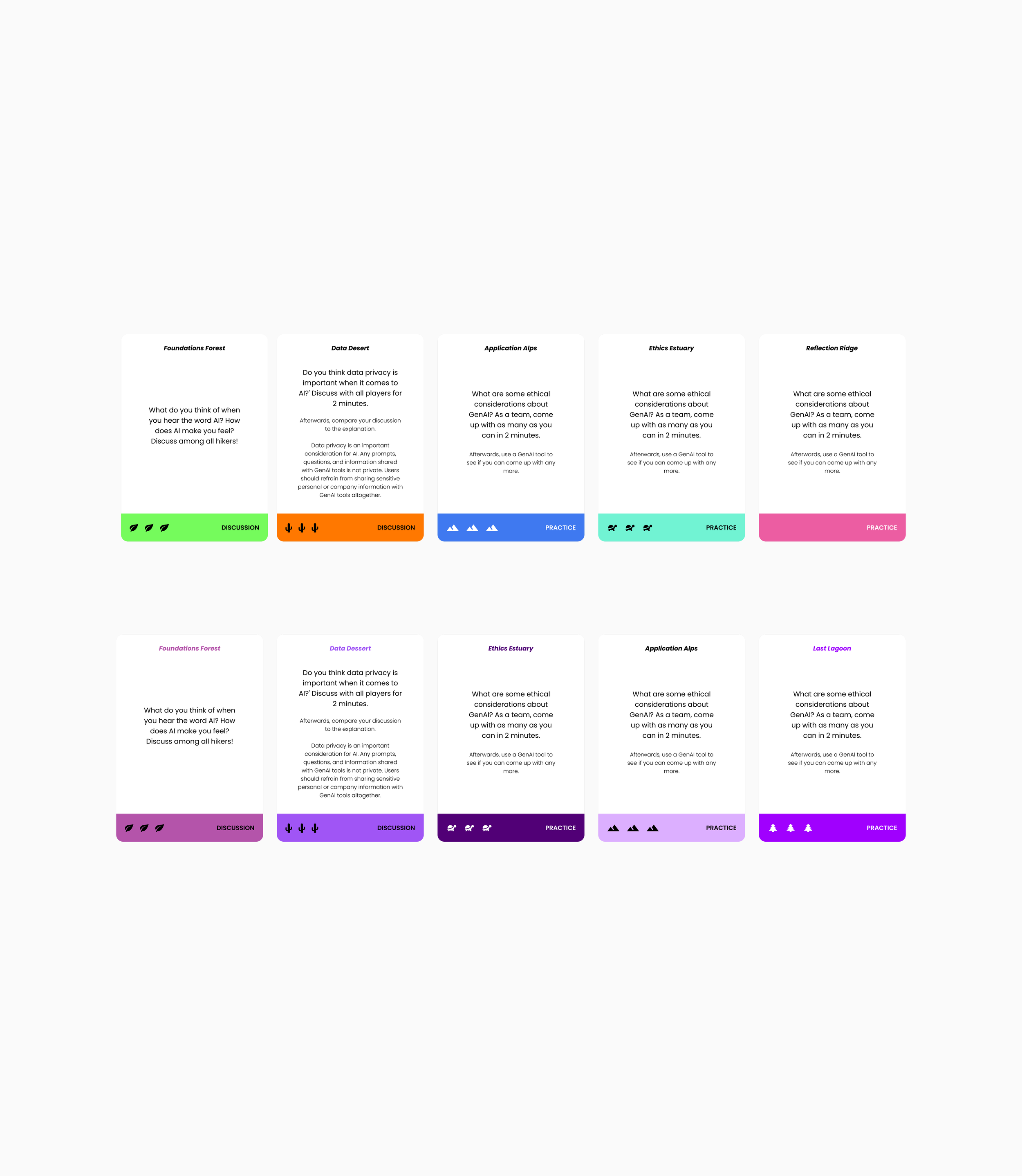 Terrain is a multilingual board game designed to make learning Generative AI playful and memorable. Players (hikers) climb Mt. Vector, crossing six “terrains,” each introducing a core GenAI concept. What started as a brainstorming session quickly evolved into a full-fledged product. TerrAIn is now used by clients, students, and young professionals worldwide.